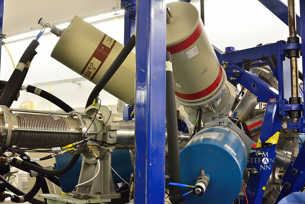Zugleich faszinierte mich der Werkstattcharakter des Labors. An vielen Stellen ist etwas in Arbeit – erkennbar an Werkzeugen und Komponenten in verschiedensten Stadien der Zerlegung und Lagerung. Rohre breiten sich von Halle zu Halle aus und bilden Zweige mit jeweils eigenen Messkammern.